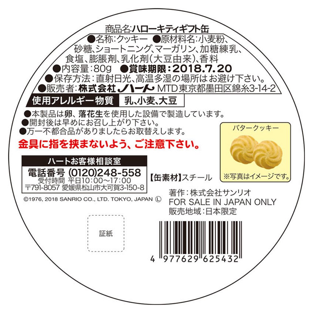 国内外で認知度が高く、幅広い世代に愛され続けている可愛らしいハローキティの手提げ商品です。70年代キティのレトロなデザインを使用しており懐かしさも感じてもらえると思います。キャニスタータイプの缶の中にバタークッキーが入っており、お菓子を食べた後は缶を後利用できます。