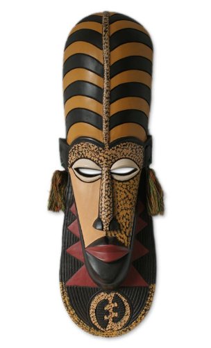 NOVICA Decorative Unique African Large Wood Mask, Yellow 'Ashanti Wisdom'