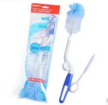 -. Feature : Product name:baby Rotary nylon brush/ Nipple Brush / Brand:Pigeon; Item:EA03; Size: Bottle Brush length:11.8inch, Nipple Brush length:5.1inch / Specifications: 1XBottle Brush +1X Nipple Brush / Material: handle: polypropylene, axis: polypropylene polymer, brush: nylon, metal rod: stainless steel;Heat-proof:handle:120℃,axis:120℃,brush:180℃ / Product features: 1. Can be closely attached to the bottle wall, the cleaning effect is strong; 2. The brush head is made of high density brush, can remove stubborn stains; 3. The brush handle with plastic coating, can prevent the bottle scuffing; 4. Can freely rotate brushing and straight brush; 5. With the nipple brush, cleaning more convenient;