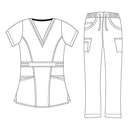 Top: Fitted back with curves for skinny look / Tag less neck for comfort / Waistband for skinny look / Multi patched pocket / Multi-section accessory pocket, Pants: Elastic closure with adjustable drawstring straight cut scrub pants / Two round side roomy pocket on the waist with the inner pocket / Multi-pocket cargo, 3 cargo pocket on the both sides with cellphone pocket / inseam 29