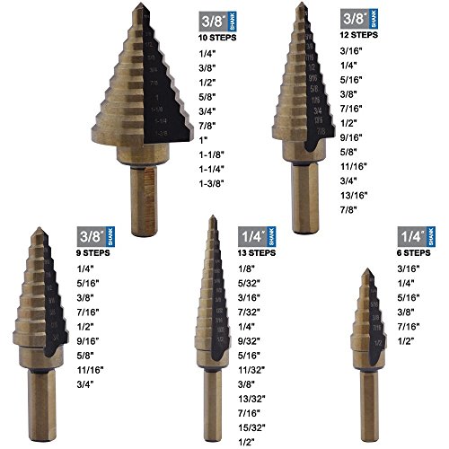 Yakamoz 5PCS HSS Cobalt Multiple Hole 50 Sizes Step Drill Bit Set Tools with Aluminum Case