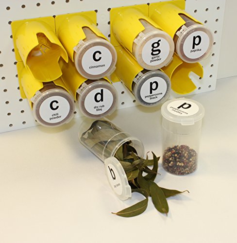 - Docks lock in securely on pegboard and can be rearranged, jars nest in the docks.