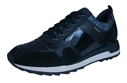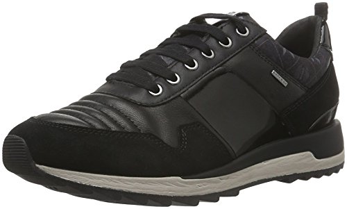 Binding : Apparel Product Description Geox D Aneko B ABX Womens Leather Waterproof Trainers / Shoes - Boasting an ultra-lightweight and a cutting-edge design, these Aneko ABX women's trainers from Geox are perfect for rainy days. Part of the Amphibiox collection, Geox's innovative waterproof and breathable range. In an elegant black leather version with metallic inserts, they feature a removable insole, guaranteeing hygiene and practicality. Very lightweight and breathable sole. They are easy to put on and wrap the foot, without constricting it. Glamorous, functional and versatile.The pioneering water repellent and breathable Geox sole is enhanced with a series of innovative technologies for the upper which allow Amphibiox to offer excellent performance both in terms of water resistance and breathability.The special Amphibiox membrane keeps the feet completely dry, protecting them from the rain, mud and snow. At the same time, natural temperature regulation is guaranteed by excellent breathability, for freshness or warmth depending on the outside temperature. 0