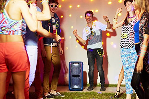 Bring the night alive with this EXTRA BASS wireless Bluetooth and NFC speaker system that pumps up any gathering with deep, punching bass, club-like LED lighting and DJ effects. Stream and control great sounding music from your smartphone and even add extra wireless speakers to the mix. It’s ready to hit the party scene with bass that hits.Feature