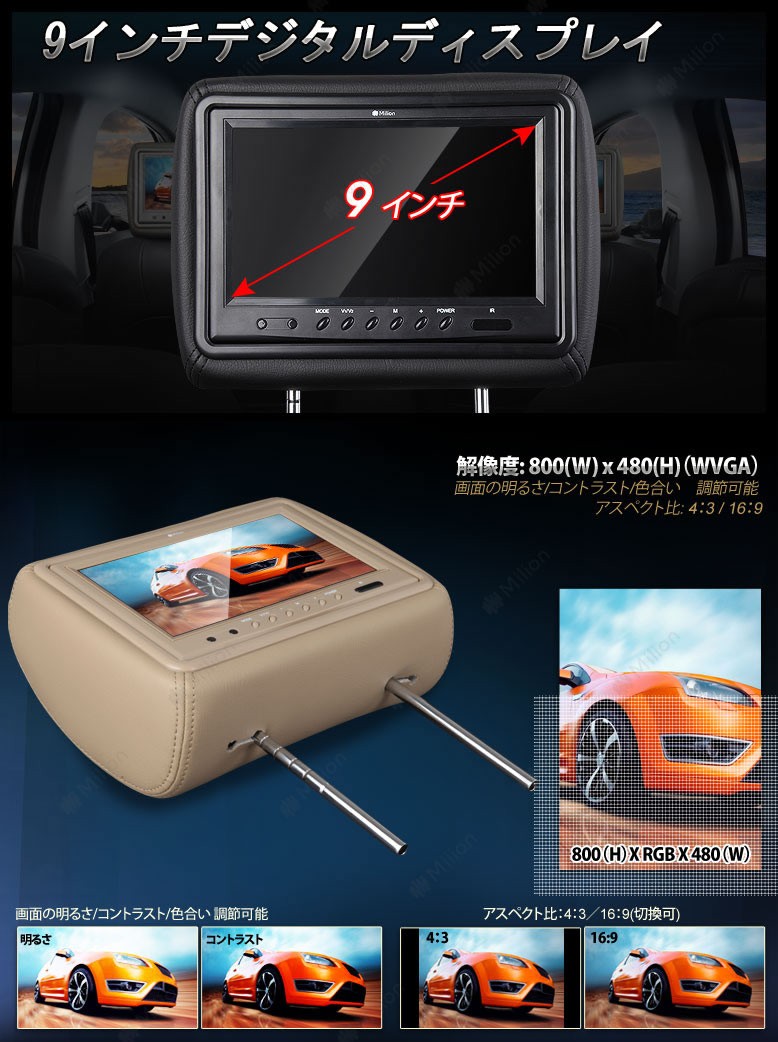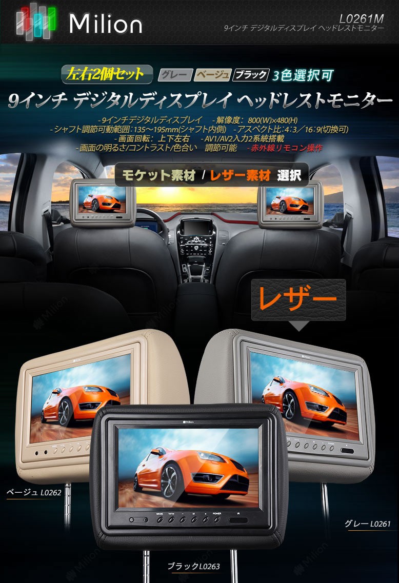 製品色:L0261Z(グレー)/L0262Z(ベージュ)/L0263Z(ブラック)3色選択可9インチデジタルディスプレイ解像度:800×RGB×480(WVGA)シャフト調節可動範囲:138~195mm(シャフト内側)シャフト直径:10mm(シャフト外側)表示モード:4:3/16:9画面旋回:上下左右画面明るさ/コントラスト/色合い/飽和度 調節可能外部入力2系統搭載-メニュー言語:日本語/英語/ドイツ語/フランス語/イタリア語/スペイン語/ポルトガル語/繁体字中国語-動作電圧:DC 12V-最大動作電流:10A-総重量:3.4kg(1セット)-本体重量:2.45kg(1セット)
