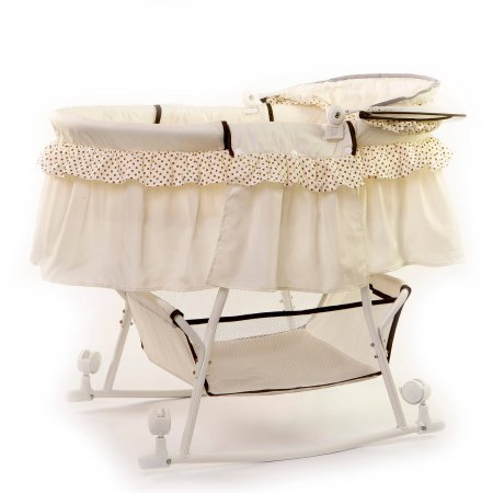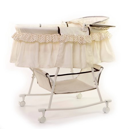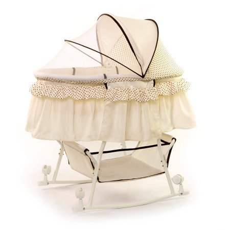 Studio : Dream On Me. Publisher : Dream On Me. Binding : Baby Product Product Description What could be better than having a bassinet and cradle all in one? The Dream On Me Bassinet and Cradle boasts features you'll surely love. With a spacious bassinet, mattress pad for comfort, full canopy and integrated storage basket, this piece makes the perfect addition to any nursery. 0