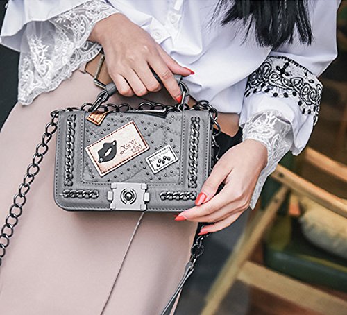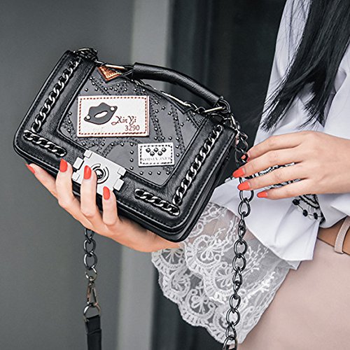 -. Brand : Vicue -. Department : women -. Feature : Fashion lock / High quality metal / Exquisite rivet and badge / Made of durable PU leather with good sense of touch / It is a beautiful bag for any occasion no matter what the season -. ProductGroup : Shoes -. ProductTypeName : HANDBAG -. Title : Vicue Women Messenger Bags Rivet Chain Shoulder Bag Leather Crossbody