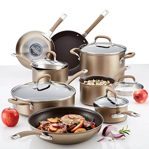 This striking Circulon Premier Professional Hard Anodized Nonstick 13-Piece Cookware Set includes an array of professional quality pots and pans to create gourmet meals for family and friends. Heavy-duty hard-anodized construction provides lasting durability. Heats quickly and evenly to reduce hot spots that can burn food. Set Includes: 8 Qt. Covered Stockpot, 5 Qt. Covered Saute with Helper Handle, 3 Qt. Covered Straining Saucepan, 2 Qt. Covered Straining Saucepan, 1 Qt. Covered Straining Saucepan, 12" French Skillet, 10" French Skillet, 8.5" French Skillet