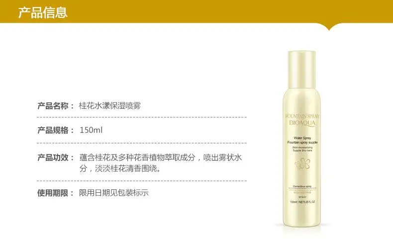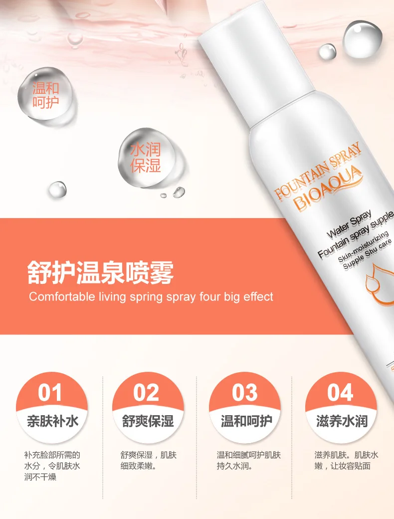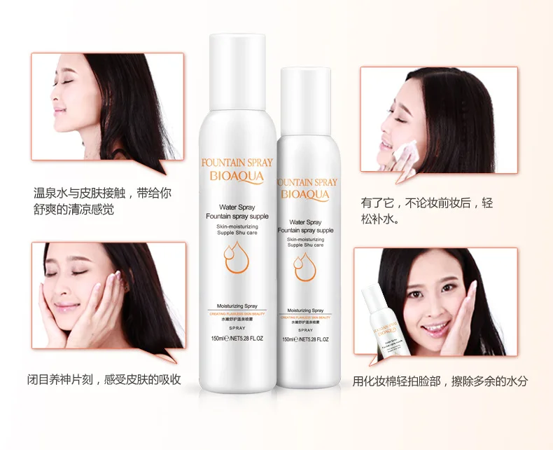 Fountain spray Skin Moisturizing dari BIOAQUA menyempurnakan Kebutuhan Anda Memiliki wajah Yang segar sepanjang hari. Hanya Dengan 1-2 x semport pada bagian wajah anda, Wajah langsung Terasa Segar dan Bercahaya. bye bye kulit kering dan kusam.Fungsi secara umum adalah menyegarkan wajah yang kusam, melembutkan, mengecilkan pori, mengontrol minyak, memutihkan kulit wajah, melindungi kulit wajah ari polusi seperti asap rokok, akibat make up, asap kendaraan, paparan sinar matahari dan debu menegarkan wajah seketika tanpa harus cuci muka, wajah tetap segar dan cerah walaupun tidak pakai make upCara pakai:cukup semprotkan keseluruh permukaan wajah kurang lebih 20-30cm jarak dari wajah, tidak perlu dioles atau dibilas, wajah akan cerah dan segar seketika, sangat cocok untuk wanita yang sangat sibuk dan tidak ada waktu untuk cuci muka, seperti saat bangun tidur dan buru2 ketemu orang misalmya....praktis dan bisa dibawa kemana2 tanpa harus takut tumpah, anda bisa sertakan produk ajaib ini didalam tas kerja anda, dan penampilan anda akan tetap terjaga disela2 kesibukan anda