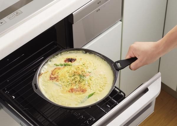 オーブンよりも短時間で調理が可能。グリルだから高温でムラなく火が通り、うまみを凝縮します。高火力で石釜風に。蓋付きです。 |