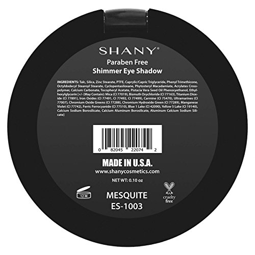 From the creators of the masterpiece 7 layer all-in-one makeup set, SHANY brings you their brand new shimmer eye shadow collection. Our shimmery shades have beautiful gold flex that subtly catch light. These eye shadows glide on like colorful cashmere on your lids. They are richly pigmented, true to color, and hypoallergenic. This formulation is Paraben free, it is perfect for all skin tones and types. Our dual purpose wet or dry eye shadow can achieve countless long-lasting looks for everyday to the runway. These easy to blend shades are stylishly packaged in a slim black compact. To increase the lasting power of your gorgeous look, pair it with the new SHANY Paraben-free eye primer. Made in USA.Feature
