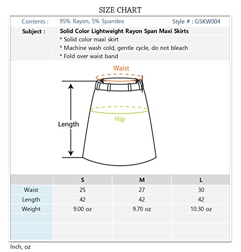 | Luna Flower Women's Solid Lightweight Rayon Span Maxi Skirts |