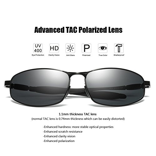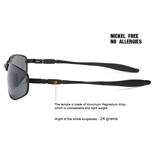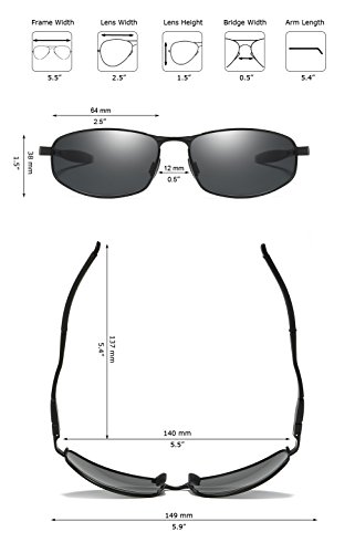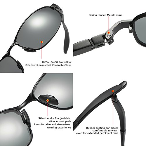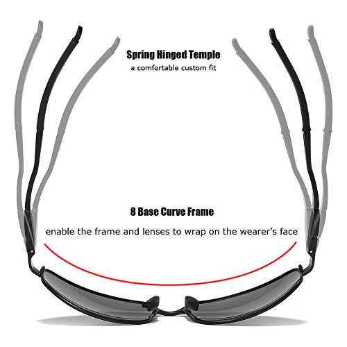 The wrap polarized sunglasses adds a sense of sport classic style with a sleek combination of plated stainless steel and Aluminum-Magnesium alloy temples. The large fit, wrap frames offer generous coverage, with adjustable nose pads for all-day comfort. Polarized lenses eliminate glare, reduce eye fatigue, and block 100% of harmful UV rays. Tinted lens coloring system adds color contrast without distorting natural colors, allowing you to see more clearly. Polarized TAC Lenses are shatterproof, scratch resistant, light weight and durable, making these sunglasses suitable for all outdoor activities.