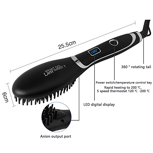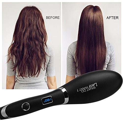 - ☆LIGHTWEIGHT AND SIMPLE OPERATION: This small and exquisite Hair Straightener Brush really easy to use, long press for turn on and off, set the proper temperature for your hair via the LCD display when it is on. Convenient to carry out as it’s light enough