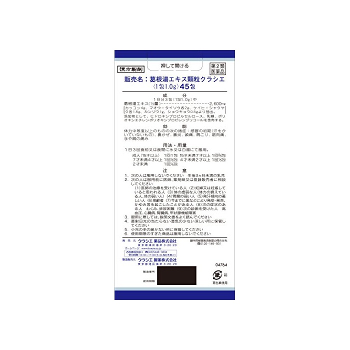 원본상품명: 【第2類品】葛根湯エキス顆粒クラシエ 45包