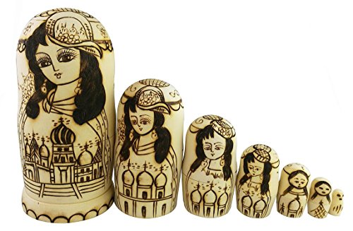-. Feature : Handmade Lady Girl Pattern Russian Matryoshka / Material: Wood / 7 Layers / High quality and even the smallest one is beautiful. / The Height of the biggest one is about 20 cm