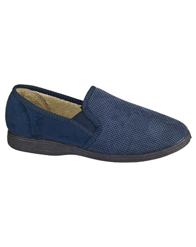 Submerge your feet?into?a world of comfort like you've never experienced before in the men's Tim slippers by?Mirak. Take every step in immense comfort as the memory foam?footbed?creates the sensation of walking on clouds and be surrounded by the extra padded soft textile lining keeping you cosy and warm making these the ideal slippers for on cooler nights. Slip them on and off at ease with the double elasticated gussets making extra space and look even better than you feel as the two toned upper adds style and sophistication.