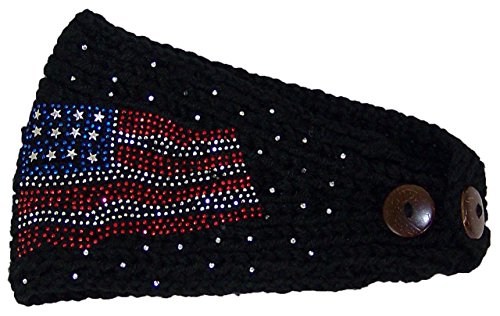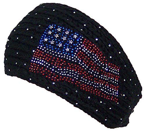 D&Y Womens Tight Rib Knit Headband W/Jeweled American Flag Design (One Size)