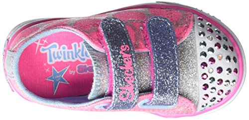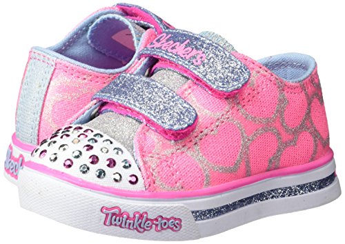 *A shoe so fun, it's sure to set her heart aflutter! *Glittery fabric upper with heart detail and light-up rhinestud toe *Dual adjustable hook-and-loop straps *Padded collar and tongue *Soft fabric lining *Cushioned footbed *Vulcanized construction *Flexible traction outsole *Available in whole sizes only, half sizes please order the next size upFeature