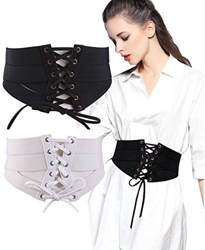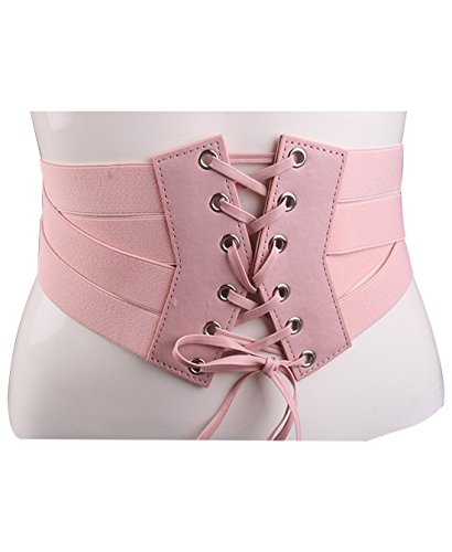 YOLI Women's Stretch Elastic Wide Band Lace-up Waspie Corset Waist Belt Cinch