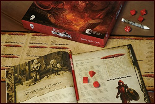 -. Feature : The game, delivered in a box set as in days gone by, has everything you need to play the game: / Sturdy large box with more than enough room to hold everything you need for a game session / 144 page full color rule book with everything from how to play, character creation, equipment, magic items, spells, creatures, and even two adventures! / An East Mark logo pencil / A full set of Game Science precision dice, un-inked One White Crayon, to color in the Game Science dice as we did in the old days