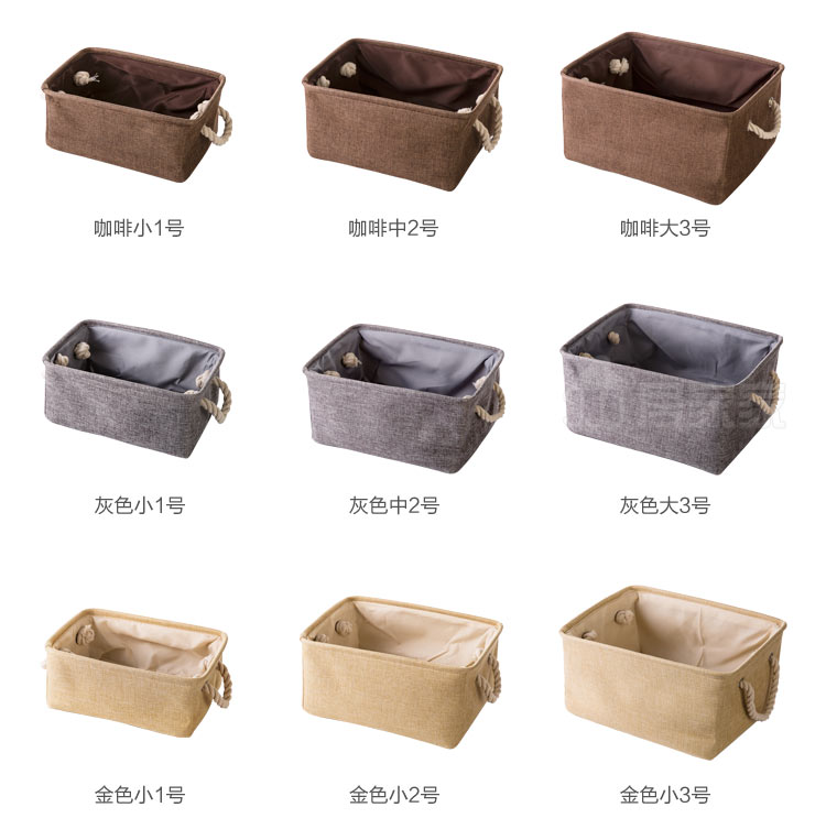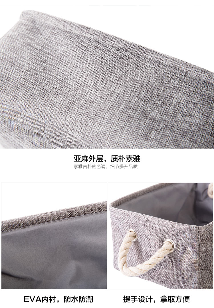 Plain linen fabric with handle storage baskets, toys, clothes closet organize storage box SN1626