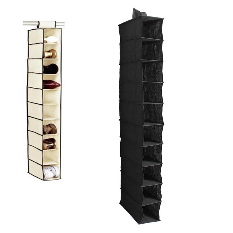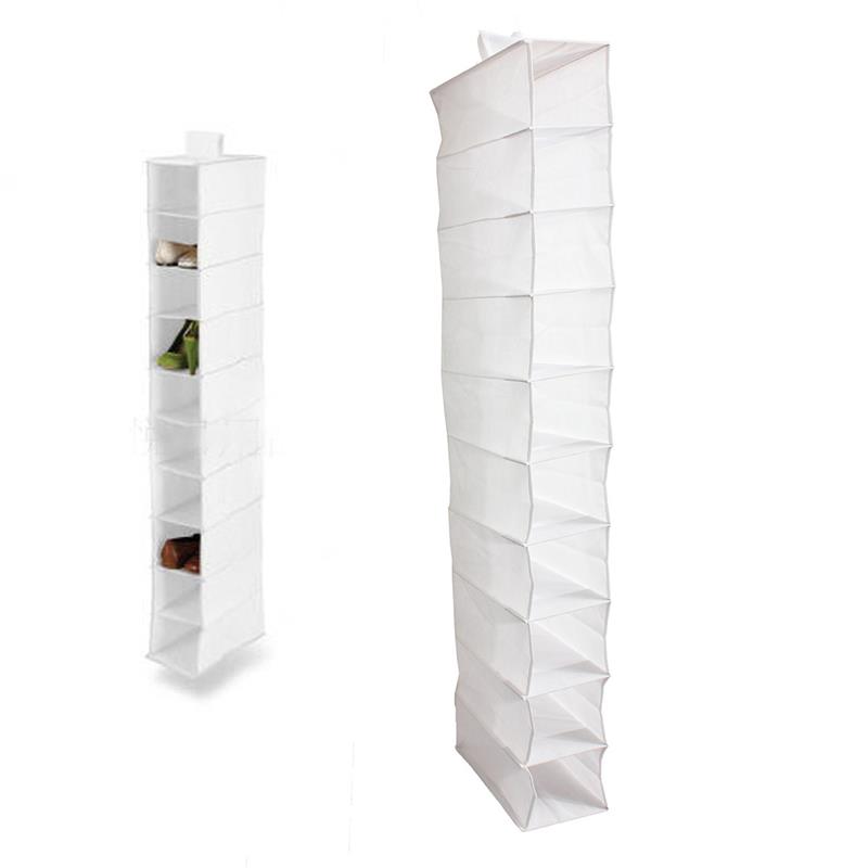 This is the perfect solution! The hanging organisers simply hang onto any wardrobe rod. No screws or fittings.The organiser has enough space to accommodate clothes or shoes.