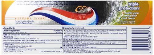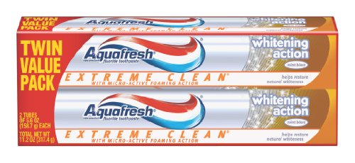 -. Binding : Health and Beauty -. Brand : Aquafresh -. Feature : Aqua fresh extreme clean whitening action toothpaste creates micro active foam which seeks out hard to reach places in your mouth and fights bad breath / It rinses clear and carefully polishes your teeth so after only one tube you'll be left with significantly cleaner, smoother, whither teeth / It's like a boost of confidence in a tube take the feeling of clean to the extreme -. Label : GlaxoSmithKline -. Manufacturer : GlaxoSmithKline -. MPN : 53100338436 -. PartNumber : 53100338436 -. ProductGroup : Health and Beauty -. ProductTypeName : HEALTH_PERSONAL_CARE -. Publisher : GlaxoSmithKline -. Studio : GlaxoSmithKline -. Title : Aquafresh Extreme Clean Whitening Action Twin Pack Toothpaste, 5.6 Ounce