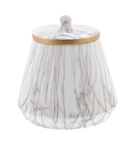 Deco 79 59951 Ceramic Marble Oval Jar, White/Gray/Gold