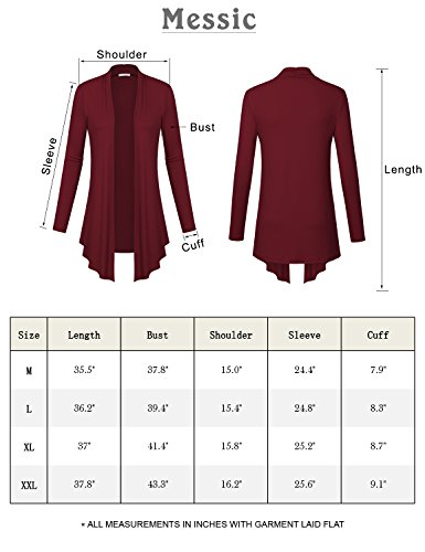 For more Tops choices, search Amazon for "Messic " Messic offers trendy designer inspired fashion at deep discounts.You can wear this casual top in every casual occasion. Feature:Soft and comfortable to wearEasy to wash and dryHigh quality and be durableLightweight Warm Please choose your size based on bust measurment below(in inches): M: Length 35.5", Bust 37.8", Shoulder 15.0", Sleeve 24.4", Cuff 7.9" L: Length 36.2", Bust 39.4", Shoulder 15.4", Sleeve 24.8", Cuff 8.3" XL: Length 37", Bust 41.4", Shoulder 15.8", Sleeve 25.2", Cuff 8.7" XXL: Length 37.8", Bust 43.3", Shoulder 16.2", Sleeve 25.6", Cuff 9.1"
