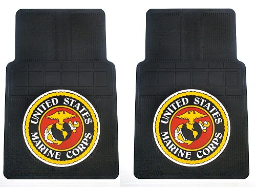 - Feature : Bright Military "Marines" design / Protects vehicle's carpet against spills, stains, dirt and any debris / Vibrant, molded in colors will not fade / Approx. dimensions - 27" inches (long) x 17" inches (wide) each front mat (Universal-fit) / Unit of measure - 1 pair