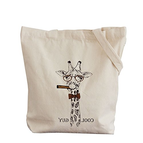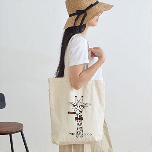 Canvas Tote Book Bag with Zipper Eco-friendly Reusable Shopping Bag 12-ounce Pure Cotton Giraffe Pattern