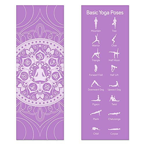 Pose in style with our Chakra Art series of comfy, classic 1/8" yoga mats. Each mat features a lavish, detailed mural depicting the seven most vital chakras and lots of flourishes that recall Eastern art. If you're a beginner, flip the mat over for a handy basic pose guide. The 16 included poses are organized to carry you through a full session: begin with salutations, end with restful positions, and poses in the middle are arranged by muscle group.