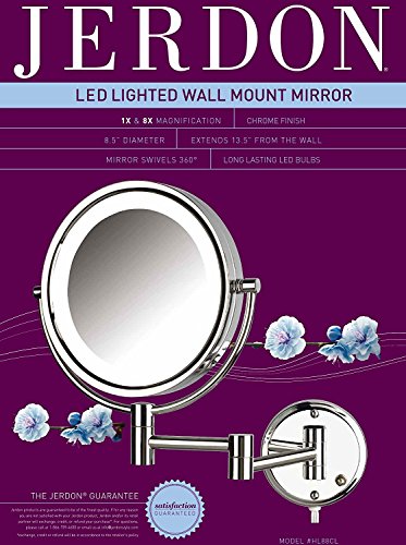 Jerdon HL88CL 8.5-Inch LED Lighted Wall Mount Makeup Mirror with 8x Magnification, Chrome Finish