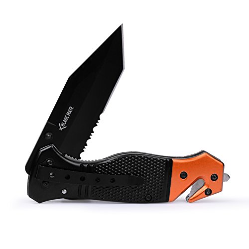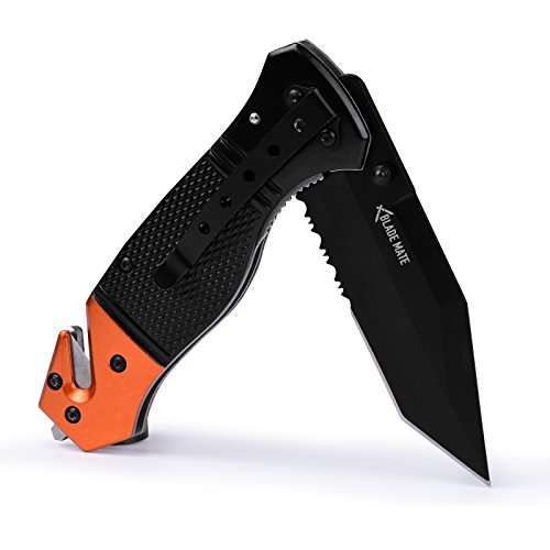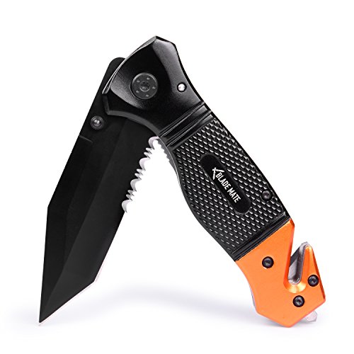 Blade Mate Survival Knives: Tactical Folding Rescue Pocket Knife with 3.5" Stainless Steel Tanto Blade, Seat Belt Cutter, and Glass Breaker