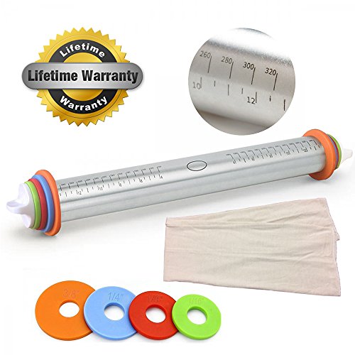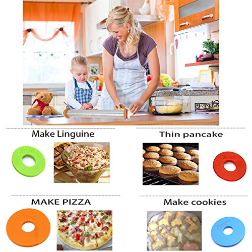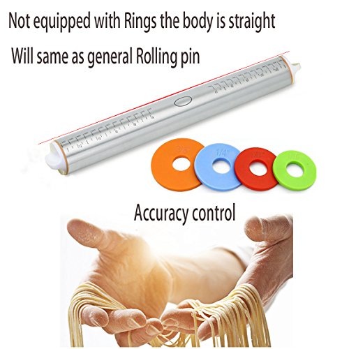 ✔EQUAL DOUGH THICKNESS IS ASSURED: 1/16", 1/8", 1/4", and 3/8" inch removable rings make it simple to roll to a desired thickness.both new and veteran will like it and need it