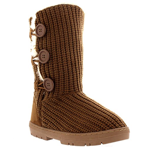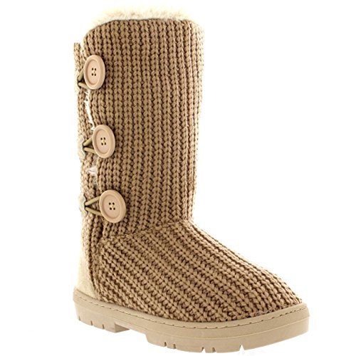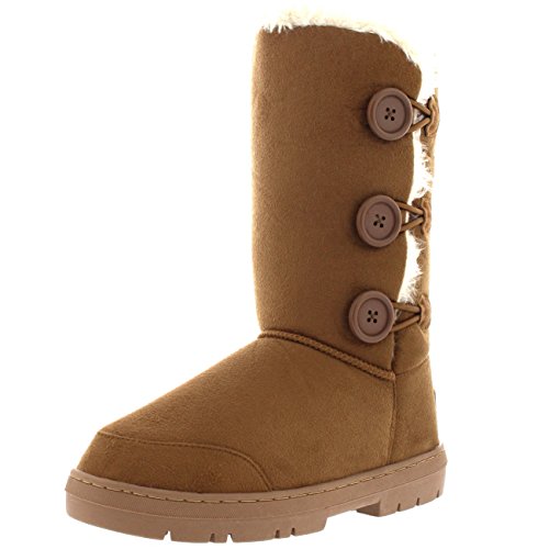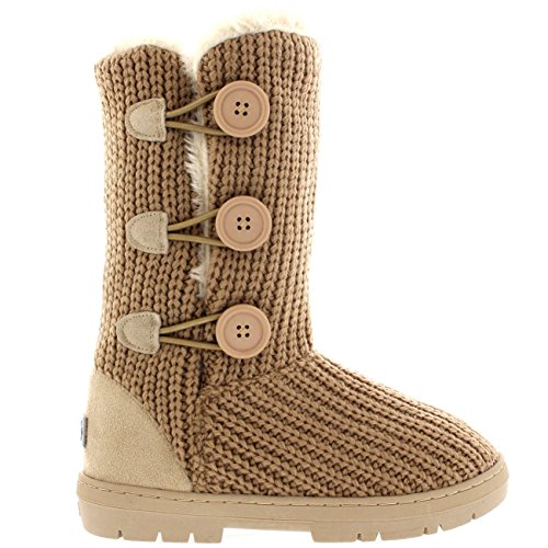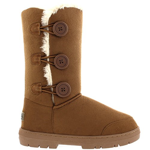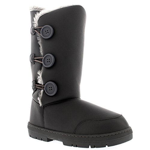 | Womens Triplet Button Fully Fur Lined Waterproof Winter Snow Boots |