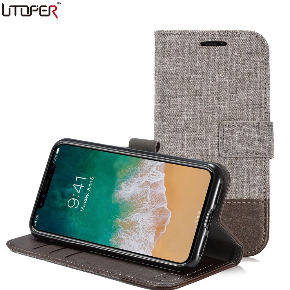 Features:Canvas Patterns Wallet Cover Flip Stand PU Leather Phone Case