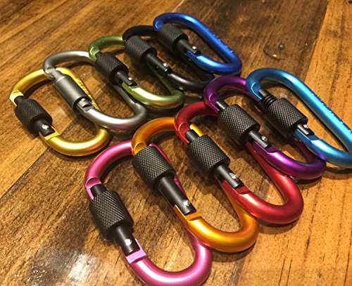 -. Feature : HIGH QUALITY CARABINER: Made from strong yet lightweight aluminum alloy. / SECURE LOCKING: Screw lock and spring clip lock make them secure and convenient. / PERFECT FOR: Outdoor activity, Camping, Fishing, Hiking, Traveling, Keychain, etc. / OTHER USES: Ideal for hanging cords, ropes, hoses and other items. Practical and convenient for daily use. NOTICE: Not for climbing. / INCLUDED: 6 x Aluminum Locking Carabiner, Spring Clip, D Shaped