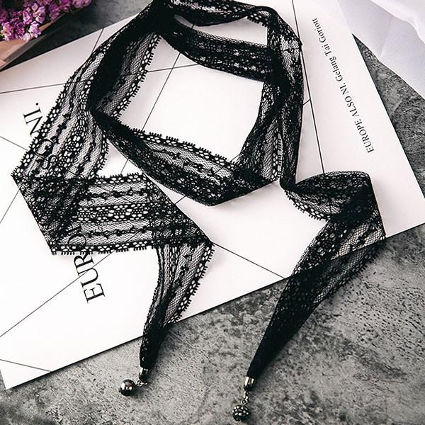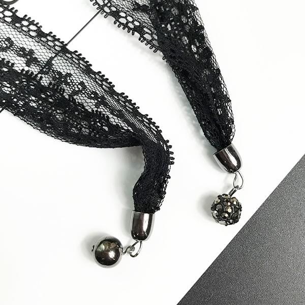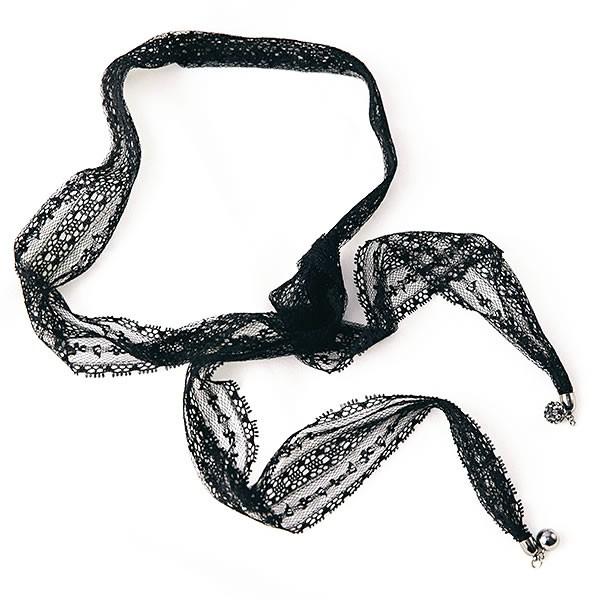 | 商品名:レース ロング チョーカー ネックレス チャーム付【 レディース 女性 黒 ブラック black 】 |