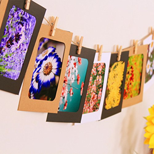 Peacheart 20 Pack DIY Paper Photo Frame, Multicolor Wall Deco Fits 4" Pictures With Clothespins And String