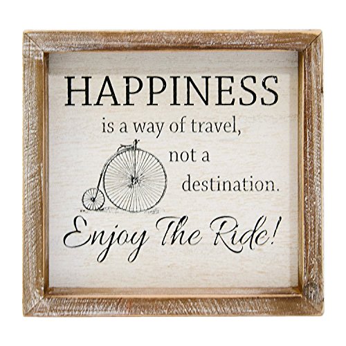Happiness Not Destination Enjoy the Ride Brown 8 x 7.5 Inch Wood Framed Hanging Wall Plaque