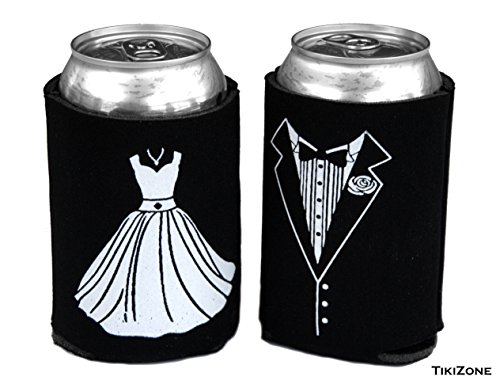 - Each Can insulator is printed on two sides (bride has two wedding dresses, groom has two tuxedo)