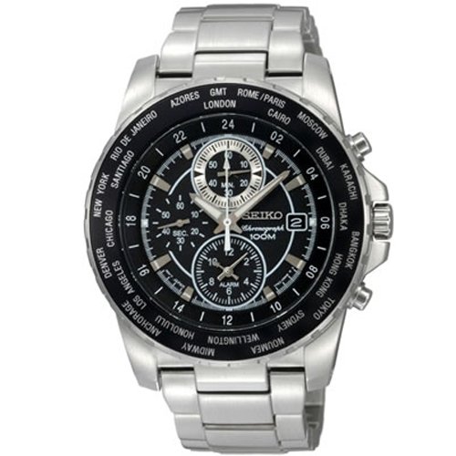 -. Title : Seiko Mens Chronograph Alarm Stainless Steel Black Dial Watch SNAC61P3