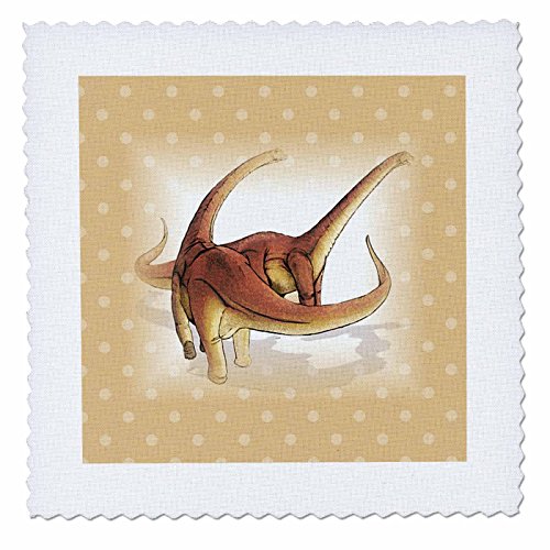 3dRose qs_218965_2 Print of Alamosaurus Dinosaurs On Tan Dots-Quilt Square, 6 by 6"