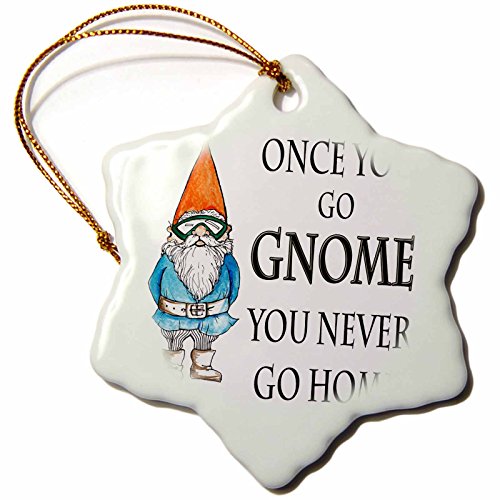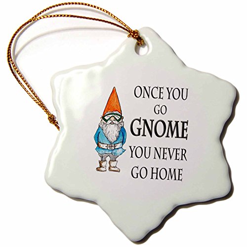 3dRose orn_124000_1 Once You Go Gnome You Never Go Home Gnome Humor Elf Cartoon Snowflake Porcelain Ornament, 3-Inch