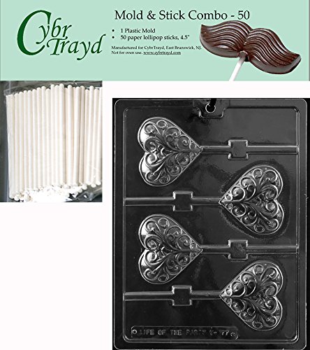 CybrTrayd 45St50-V177 "Heart Swirl Lolly" Chocolate Candy Mold, Clear