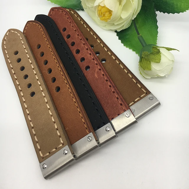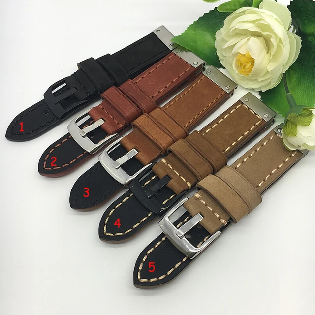 | [해외] 2016 새로운 22 미리메터 24 미리메터 새로운 남성 레이디 블랙 브라운 5 색 시계 밴드 정품 가죽 두꺼운 밴드 스트랩 벨트 실버 핀 버클 |