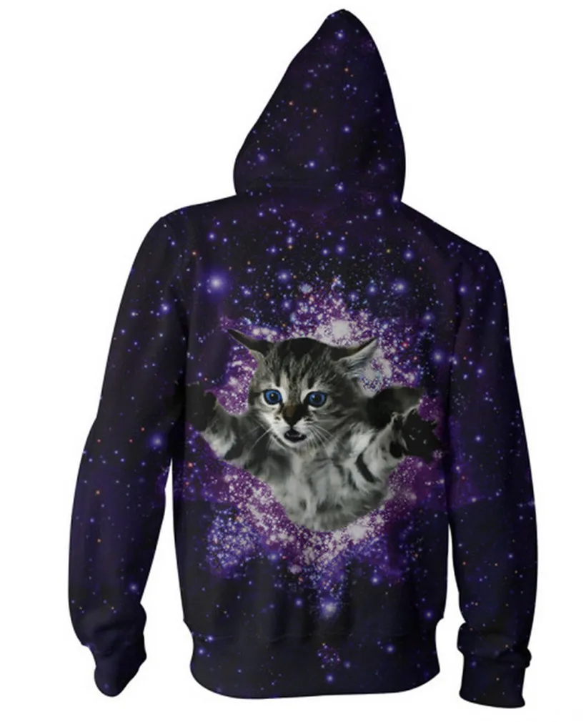 fashion style: Space cat Zip-Up Hoodie Women Men print 3D jacket