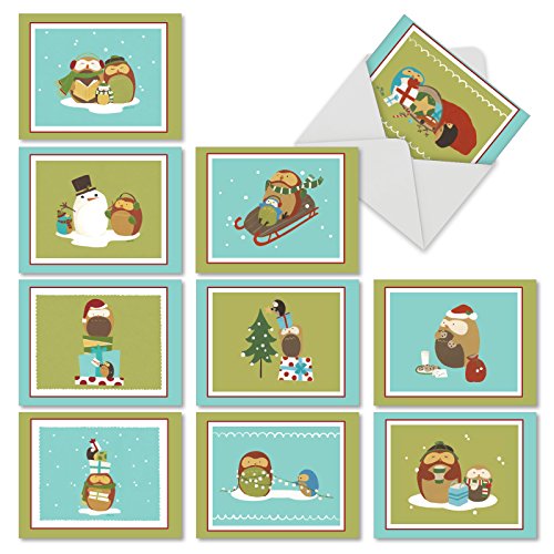 10 beautiful assorted (4'' x 5.125'') Season's Greetings note cards & white envelopes by World Art Group.